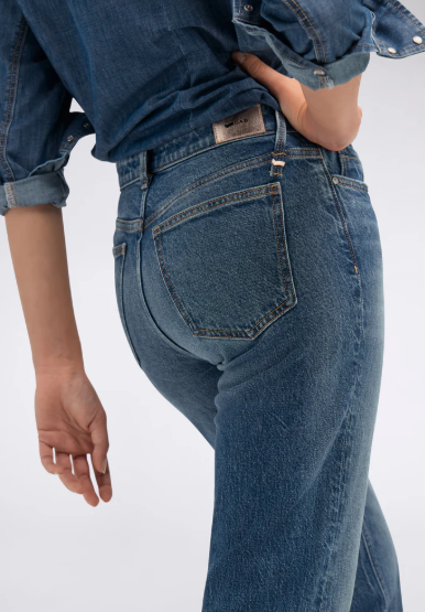 Denim 5 tasche slim fit in tessuto blue indaco comfort 13.40 OZ, trattato con lavaggio medio scuro e leggere abrasione su tasche e fondo per un look pulito ed essenziale. Un evergreen dal taglio contemporaneo, perfetto come base per ogni look di stagione.